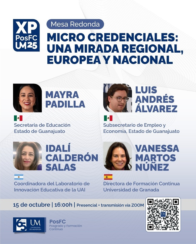 Un espacio sobresaliente de la agenda será la Mesa Redonda sobre Microcredenciales, con la participación del equipo de gobierno de Guanajuato, México, pionero en el diseño y desarrollo de estas innovadoras herramientas formativas. La iniciativa también contará con la participación de diversas facultades de la Universidad de Mendoza, entre ellas: Ciencias Médicas, Arquitectura Urbanismo y Diseño, Ingeniería, Ciencias Jurídicas y Ciencias Económicas.